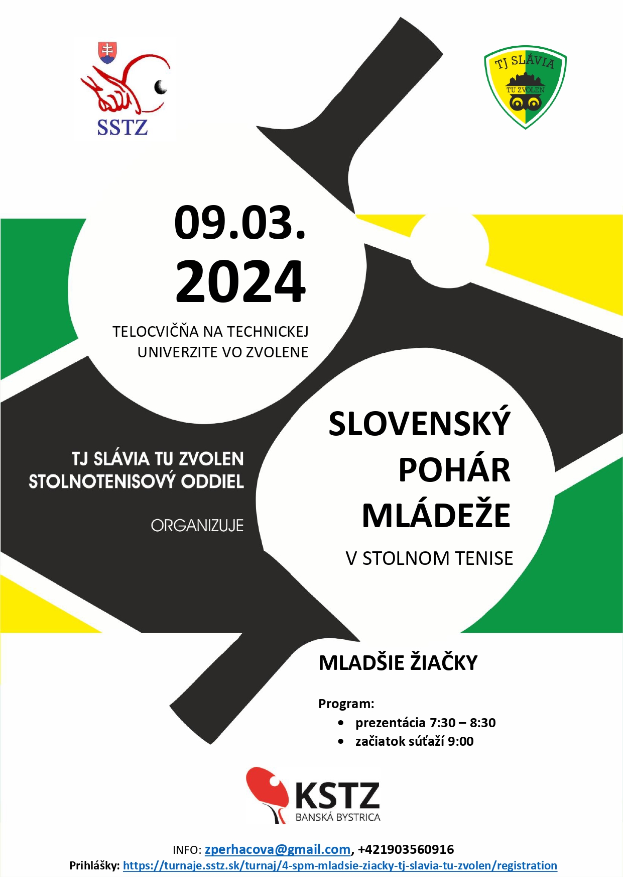 Registrácia: https://turnaje.sstz.sk/turnaj/4-spm-mladsie-ziacky-tj-slavia-tu-zvolen/registration